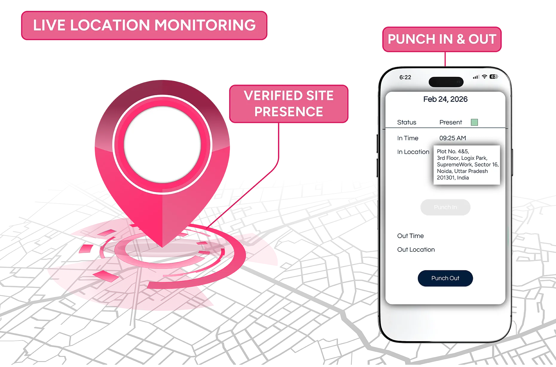 - Verified Site Presence : The geo attendance app facilitates location based validation to ensure the presence of employees at their assigned operational sites when work is done.